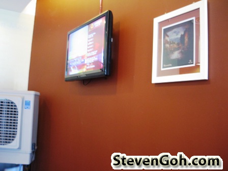 Inside the cafe, there is a living area which allows customers to sit on the sofa and have a cuppa which is more comfortable than sitting on the dining corner. There is also a LCD TV which plays music videos of all kinds.