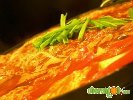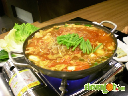Soyabean Paste Stew (Doenjang Jjigae) RM18. This hot pot is catered for 4 people. The sourness and the spiciness really keep the appetising going. The soup is cooked with chinese noodle, 冬粉 dang hun, bean curd, chinese cabbage, fish balls and miniature corns.