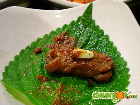 There are few ways to enjoy the barbecue meat. You can grill them and put them directly into your mouth; You can eat them together with rice; Or in a more unusual way is to use the vegetable leaves provided to wrap the barbeque meat.