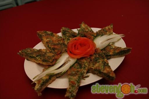 Cha Om Omelette, the egg was beaten with cha om veggie and fried. It served well with Thai chili sauce. The taste of this cha om and fried egg was very nice while the texture was crispy.