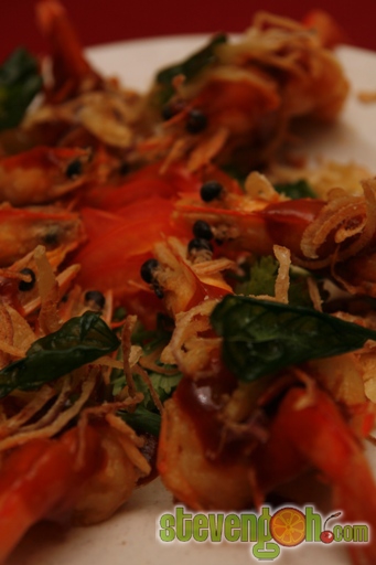 Tamarind Prawns in Basil – RM 3.50/ pcs, minimum order of 6 pieces. The prawn were covered with a thin layer of batter and deep fried with Thai Basil leaves. They were then covered with tamarind sauce. The sauce was sourish and contained a slight of sweetness.
