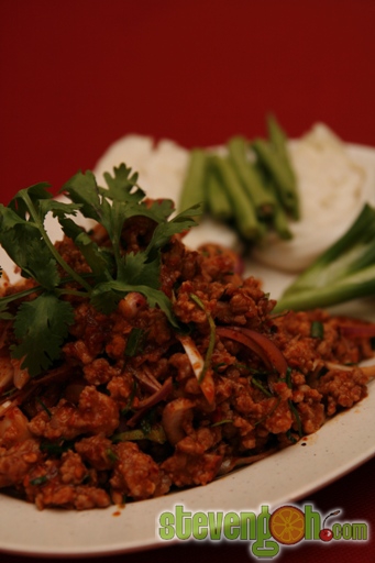 Larbmoo – RM12, fried minced pork with rice flakes. These 2 ingredients were fried together with chili oil, onions and bird eye chilis. The taste is again extremely spicy and hot as well.