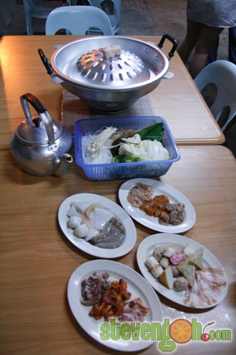 Although Aroy Chang Moo Kata is one of the many Steamboat Restaurants in Penang, the distinctive difference here is the steamboat is prepared in Thai style with charcoal.