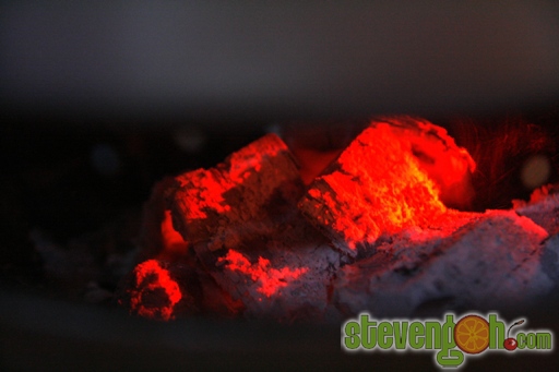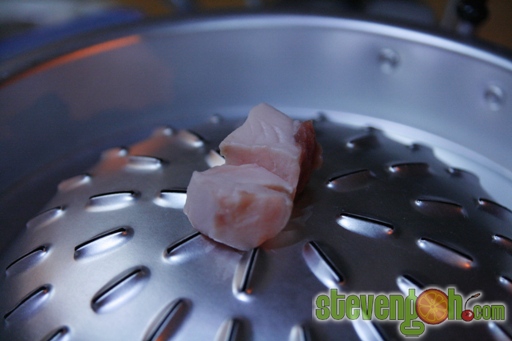 To kick off the Thai BBQ Steamboat, the pork lards were placed on top of the BBQ Charcoal Grill so that it melted and flowed down to the edge of the bbq pan which contained soup.