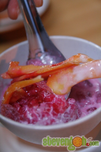 Thap Thim Krawp – RM2.50, slices of jack fruits mixed with water chestnut and added with red rose syrup and coconut milk. It was a delightful sweet ending.