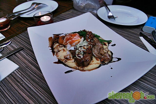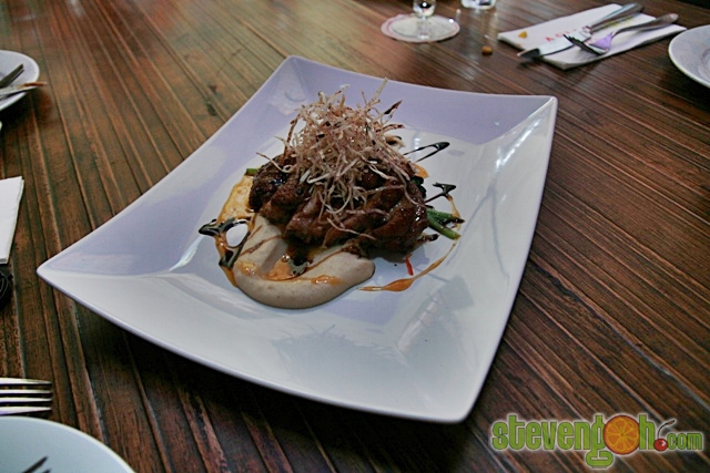 FIVE SPICE DUCK BREAST – RM34, the marinated duck breast with five spices was cooked until medium rare. It was then served with yam puree, sautéed chili spinach, kushiyaki quail eggs and orange plum reduction.