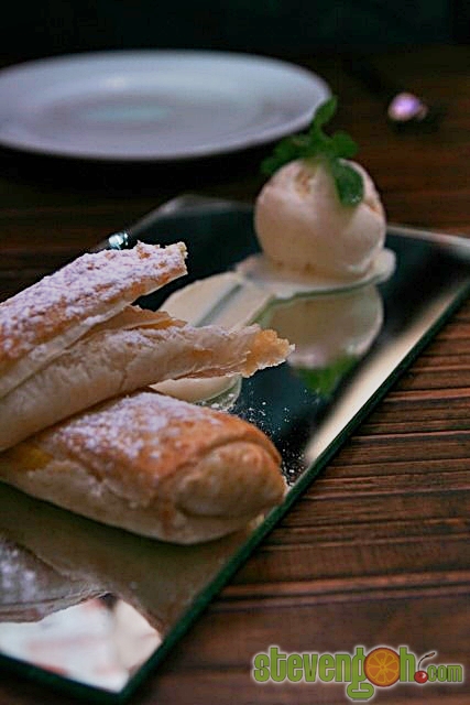TROPICAL FRUIT STRUDEL (15 MINS WAIT) – RM14, assorted seasonal tropical fruits (jack fruit), almond cream, candied nuts, spiced ice cream.