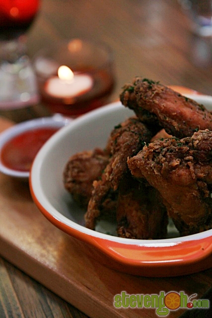 LAKSA FRIED CHICKEN WINGS (4) – RM13, the chicken wings were marinated with laksa paste. It was then deep fried until golden brown and then topped with mixed grain herbs and served with chili and lime sauce.