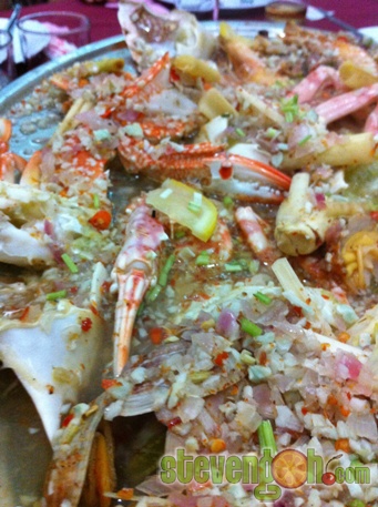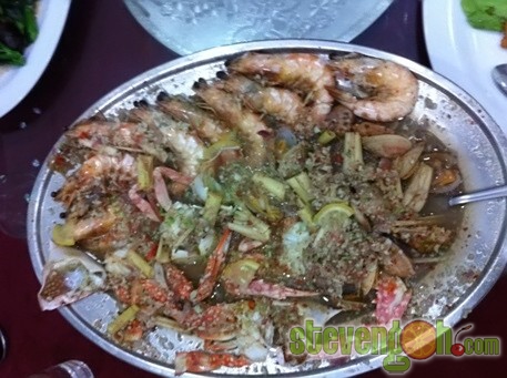 Lemon Steam Prawn and Crab – RM97, the steam prawns and crabs were cooked in sourish and spicy sauce. The sauce was made of lemon juice, lemon grass, bird eye chili slices, chopped garlic and onions.