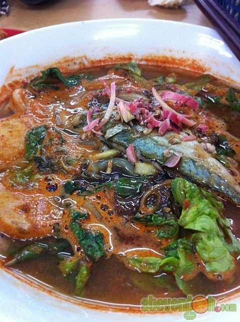 Laksa – RM3.00, the tasty bowl of laksa consists of boneless Kembong fish, assam peel, blended shallots, garlic, chilies, tumeric and lemongrass. The noodle is the regular type of thick rice vermicelli. A complete bowl of laksa is topped with Kembong fish slices, fish balls, mint leaves, slices of onion, slices of pineapple, chopped wild ginger flower and some shrimp paste.