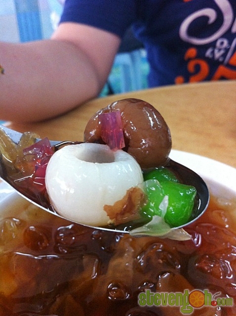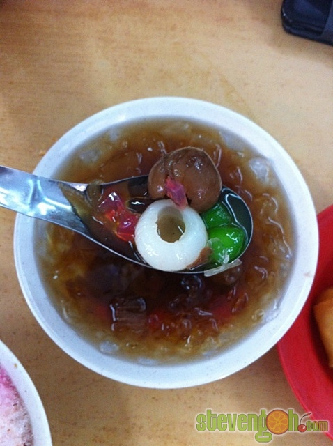 Cheng Po Liang – RM2, this refreshment consisted of pickled lai chee, longan, red bean, white fungus, jelly cubes, boiled sago and topped with some ice cubes.