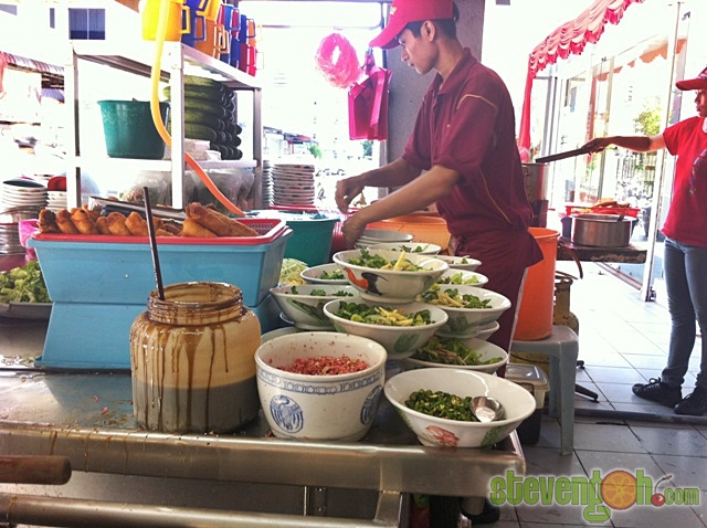 A big hot pot of laksa soup was boiling beside the stall, making the atmosphere full of hot, spicy and sourish aroma. It was mouth-watering the moment you get near to the stall.