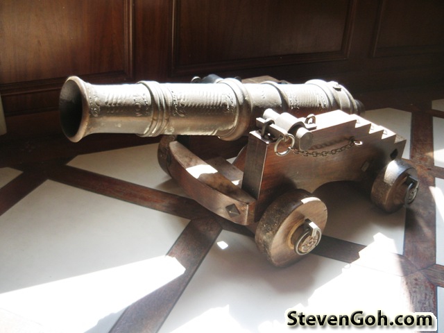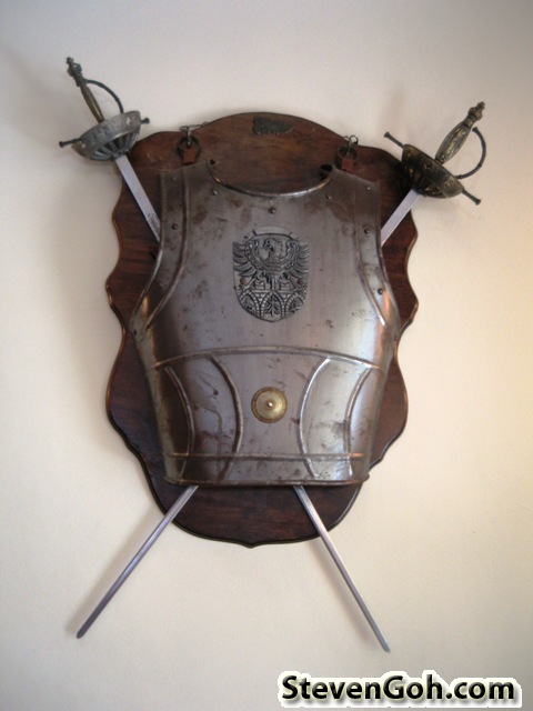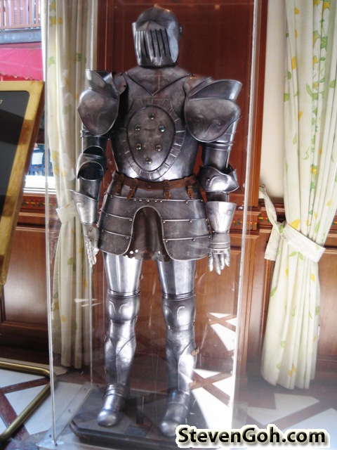 The armour and defending gear for the RPG battle, displayed at the hotel lobby.