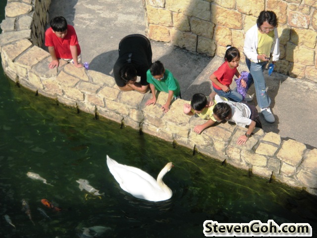 In the game, there are supposed to be crocodiles down under the castle bridge, unfortunately there were only swans and little kids.