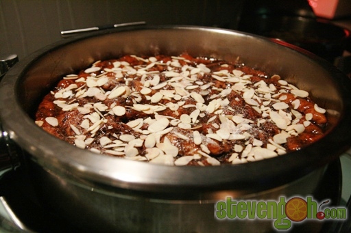 Chocolate Bread Butter Pudding, the pudding was covered with chocolate flavouring and topped with lots of almond flakes. Nice one.
