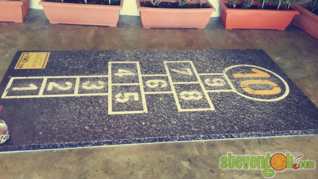 This game is called “jumping aeroplane”. A very popular game back at those days. I believe the kids nowadays will not know how to play with it.