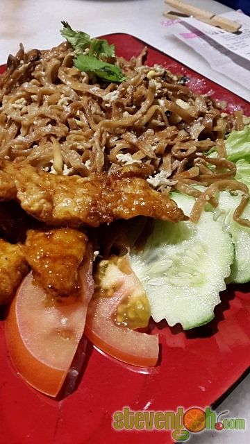 Pai Kut Ong Noodle – RM14.90, the noodle was stir-fried with homemade sauce and scrambled egg. It was then served with a few slices of ‘Pai Kut Ong’ pan fried battered pork slices which had been mixed with homemade barbecue sauce. The noodle was served with slices of tomato, cucumber and some veggie as sides and a bowl of radish soup.