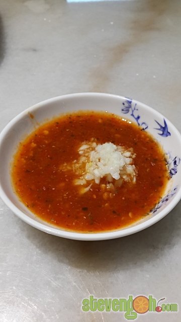 Each Hakka dish will be accompanied by a small bowl of home made chili sauce. The contents of the chili included of blended chili, ginger, parsley, onion, vinegar and some sugar.