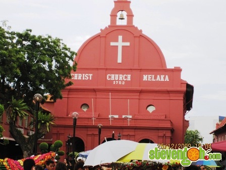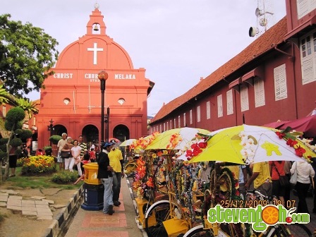Christ Church Melaka. Exhibiting the true Dutch architecture, this Church was built in 1753. The main attraction is the jointless ceiling, a brass Bible, tombstones written in Armenian, and the ‘Last Supper’ in glazed tiles. This is one of the main attractions in Melaka where most trishaws are waiting to pickup tourists.