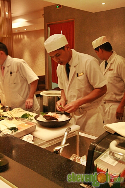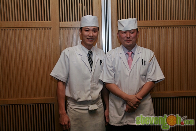 The posing of Watanabe San (right) who is the Executive Chef of Miraku together with his assistant.