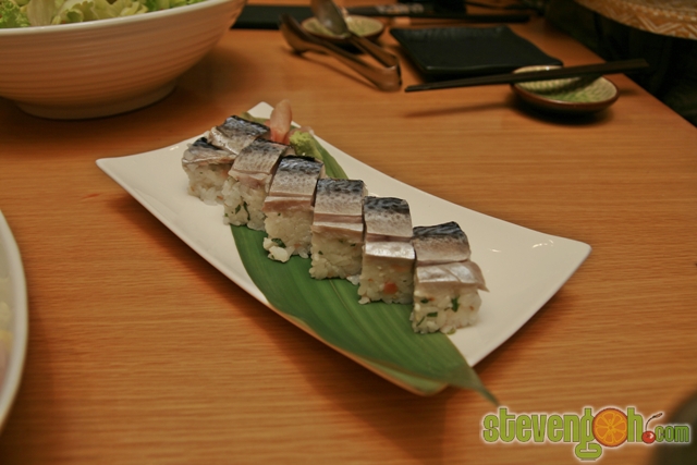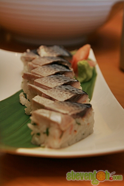Saba Oshisushi – RM36, Marinated Mackerel Square Sushi.