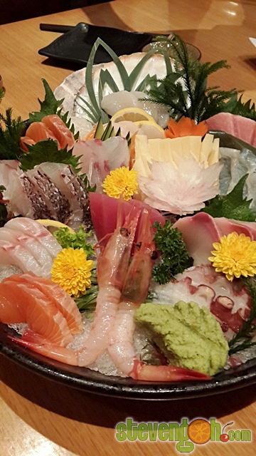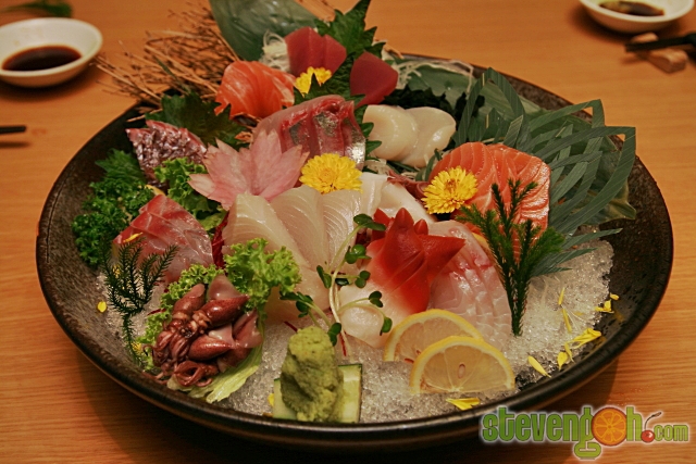 Sashimi Moriawase “Matsu” – RM180, the plate of sashimi consists of salmon, shrimps, tuna, seabass, scallop, octopus and others.