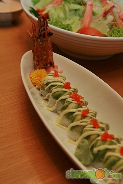 Dragon Roll – RM33, deep fried prawn roll wrapped with avocado with the topping of masago (fish roe).