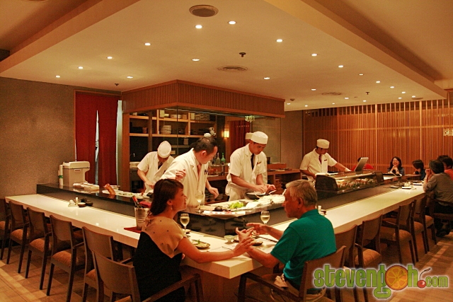 The dining area in front of the sushi counter for those who wish to enjoy fresh plates of sushi as well as get to know the sushi chefs better.