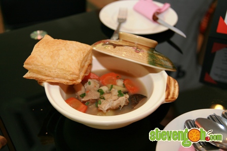 Puff Pastry Chicken Stew – RM12.90, the best part was the hot and crunchy pastry, when dipped into the soup it became semi-crunchy. The taste of the soup was not as thick and rich as the usual chicken mushroom soup. It was a fusion style of soup and definitely a pleasant starter.
