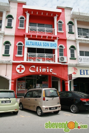 To get to this place, if you know how to get to Sunway Carnival at Prai, where Sunway is on your left and Old Town Cafe is on your right, you are now located at Jalan Todak 4. Just before reaching Sunway Carnival building, you will see Billion Supermarket is on the same row. Right before Billion turn left to Jalan Todak 3, you will see a row of shop houses with one red in between and that is the Clinic Cafe.