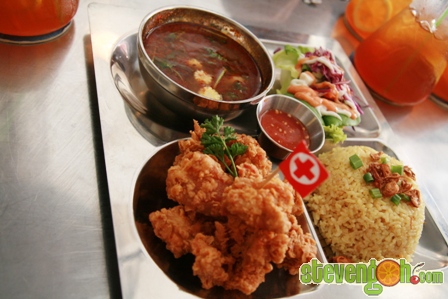 Clinic Special Chicken Rice – RM13.80, Served with flavoured rice, boneless fried chicken, tomyam soup and fresh vege with salad. If compared this dish to the previous one, in terms of freshness, this is much better. The Fried chicken cubes were hot and crunchy and the portion was a lot. The tomyam soup was appetizing and desirable. This set of lunch is value for money.