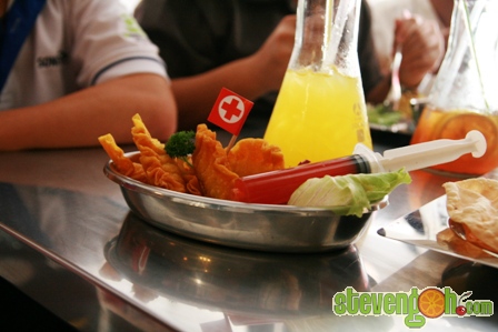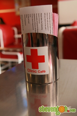 The entrance to the clinic cafe is like an entrance to the real clinic where you will see there are wheel chairs placed just beside the door and the seats in the restaurant are just like the hospital beds.