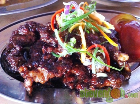 Pan Fried Marinated Dark Sauce Pork Slices – RM12. This was one of the signature dishes here. The pork slices were marinated with dark sauce, pepper, Chinese wine and some other seasonings. The meat was then pan fried to perfection. The dish was completed with some slices of tomato, chili sauce, capsicum and spring onions. The meat just melted in your mouth and it was full of flavors. This is one of my favourites.