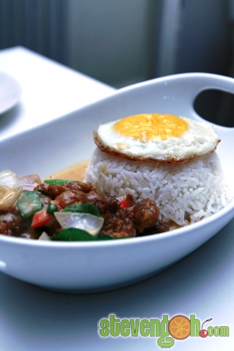 Santorini Butterine – RM7.90, the slices of mantis prawn were battered with other ingredients, then deep fried and later pan fried with capsicum cubes, onion slices and sweet and sour sauce. The dish was then topped with a sunny side up egg.