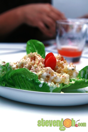 Santorini Potato Salad – RM5.00, the salad was made of mashed potato with homemade dressing and topped with oat flour and one piece of tomato and roman lettuce.