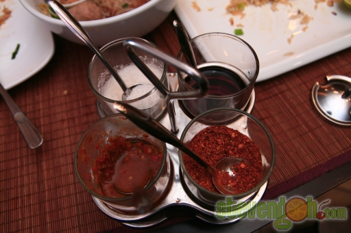 The seasoning that was served on each table consisted of sweet, salty and spicy flavours.