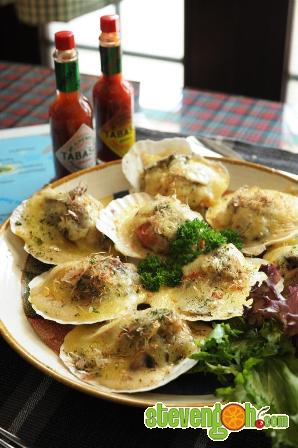 Baked Oyster Vesuvio (RM28 for ½ dozen) is a filling dish with baked oyster topped with fresh marinated tomatoes, sweet pepper and melted cheese.