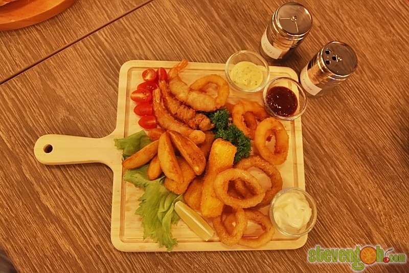 Seafood Mixed Fried Platter Set – RM36.95. Served with deep fried battered shrimps, calamari rings, fish and chips and some veggie.